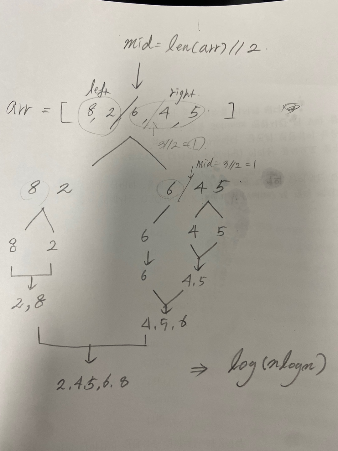 left_arr = merge_sort(arr[:mid]) # 재귀