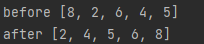 arr[1] > key_item 이기 때문에 a[2] = a[1] => [2,8,8,4,5]
