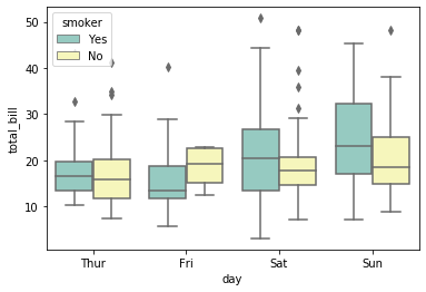 hue='smoker', palette='Set3')
