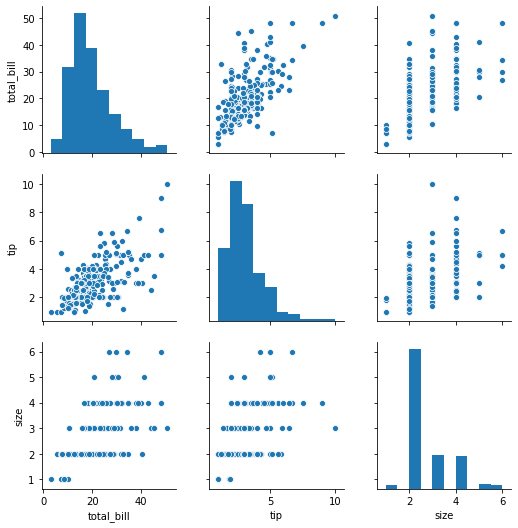 pg = sns.PairGrid(tips) # pairgrid 형태 만들기