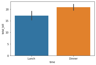 ax = sns.barplot(x='time',y='total_bill',data=tips)
