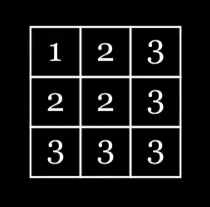 - 1행 1열부터 i행 i열까지의 영역 내의 모든 빈 칸을 숫자 i로 채웁니다.