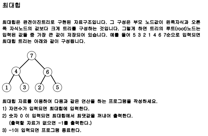 완전 이진 트리의 일종으로 우선순위 큐를 위하여 만들어진 자료구조
