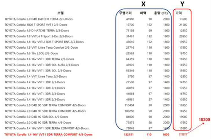 y값이 없는 x값의 데이터가 올 때, y값을 예측할 수 있음
