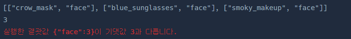 face에 해당하는 의상이 crow_mask, blue_sunglasses, smoky_makeup이므로 아래와 같이 3개의 조합이 가능합니다.