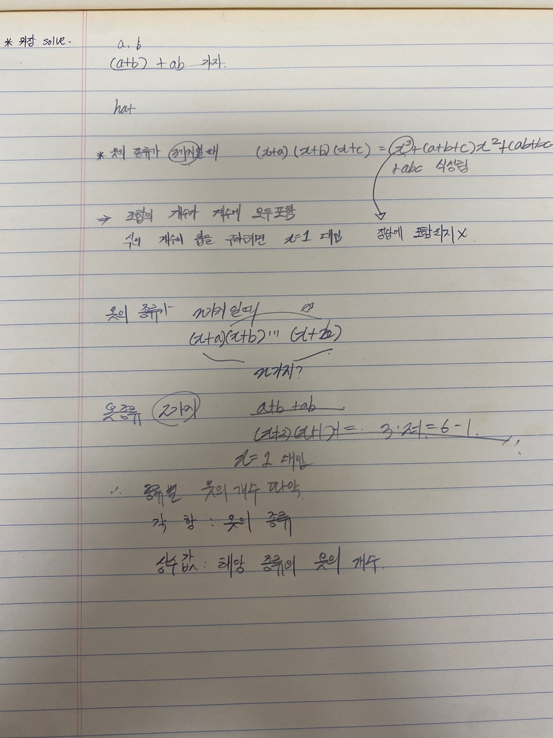 각 항에 대응되는 상수 값은 해당 옷 종류의 개수이다.