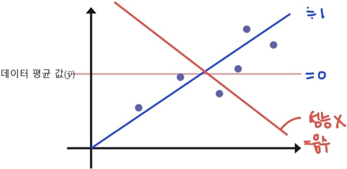 첫번째 점은 100% Y값을 설명 (자신) 두번째 점은 X로 Y를 어느 정도까지 설명할 수 있는지를 보여주는 값 세번째 점은 X에 관계없이 Y의 평균만으로 어느 정도까지 설명할 수 있는지를 보여주는 것