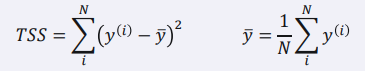 - 𝑻𝑺𝑺는 데이터 평균 값과 실제 값차이의 제곱