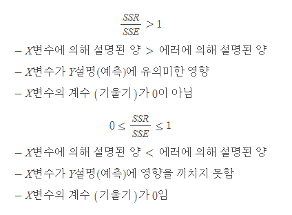 (X로 얼마만큼 설명할 수 있는지, X변수에 의해 섧명된 양)