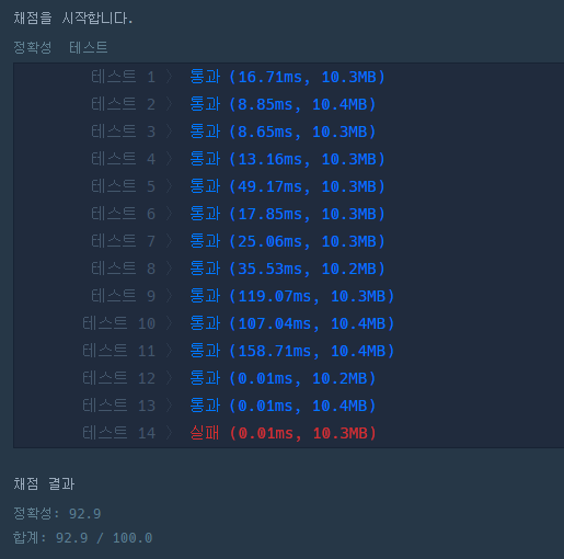 나의 풀이 (첫번째 풀이 14번만 오답, 92.9)