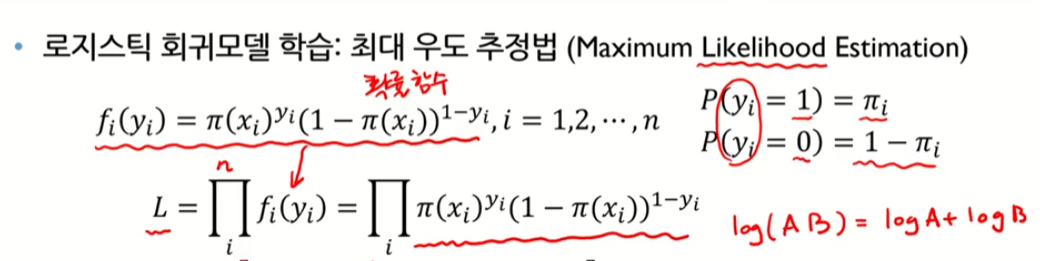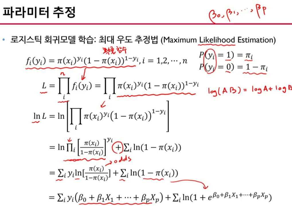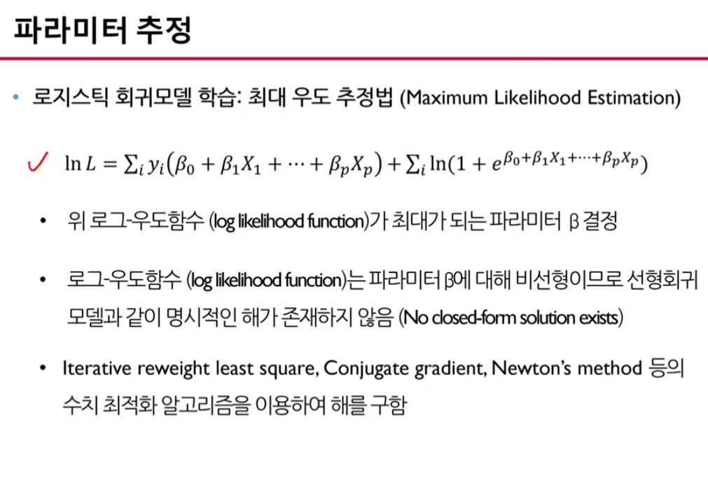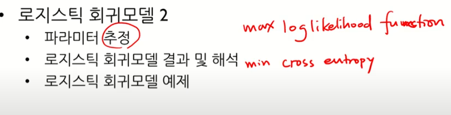 -> log likelihood를 최대화하는 B값을 찾는다. or CrossEntoropy 를 최소화하는 -> 이런 방법은 수치 최적화 방법을 이용