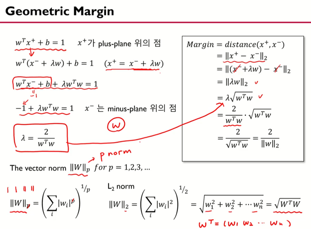 마진은 + plane 과 -plane의 차이다..