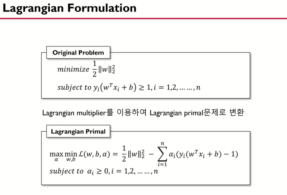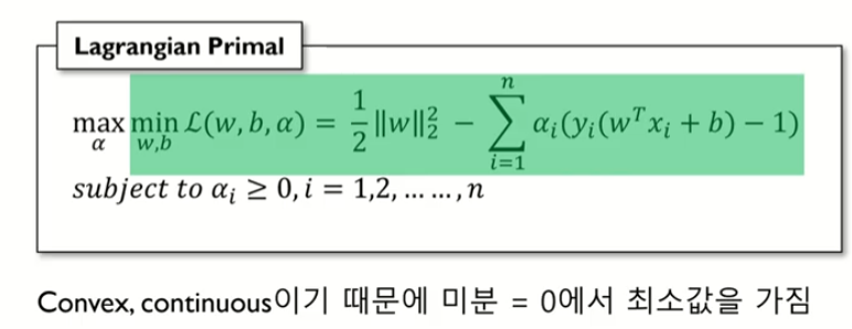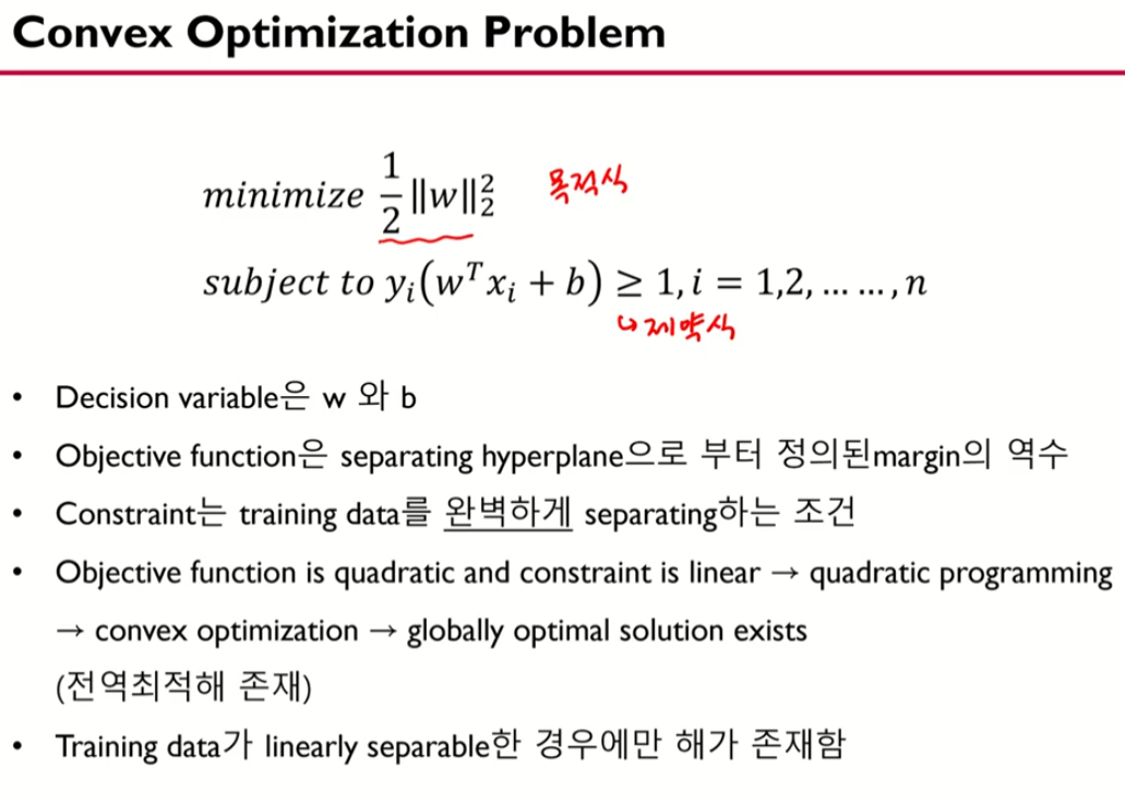 목적식을 최소로 하는 w와 b를 찾는 것이 목표임