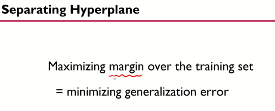 트레이닝 데이터에 마진을 최대화하는 하이퍼 플레인 을 찾는다.