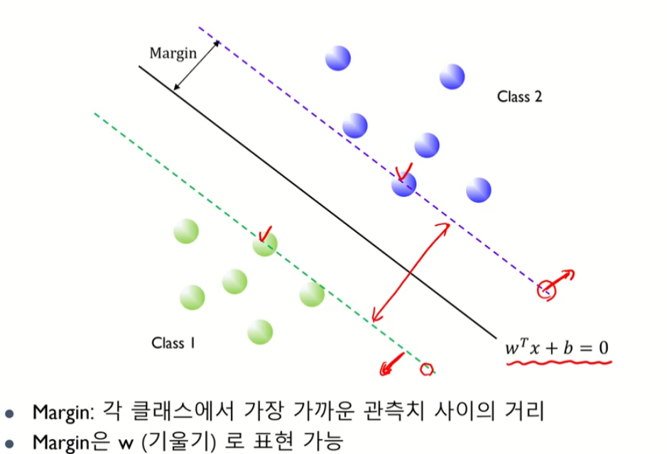 마진을 볼 때 사용하는 x들은 서포트벡터이다..