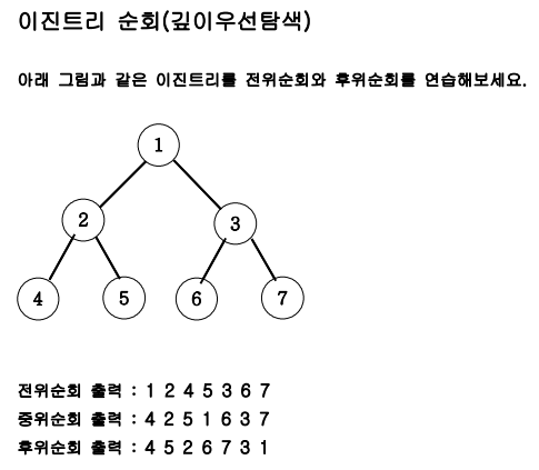 문제 제목: 이진 트리 순회(깊이 우선 탐색)