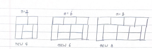 예를들어서 n이 8인 직사각형은 다음과 같이 채울 수 있습니다.