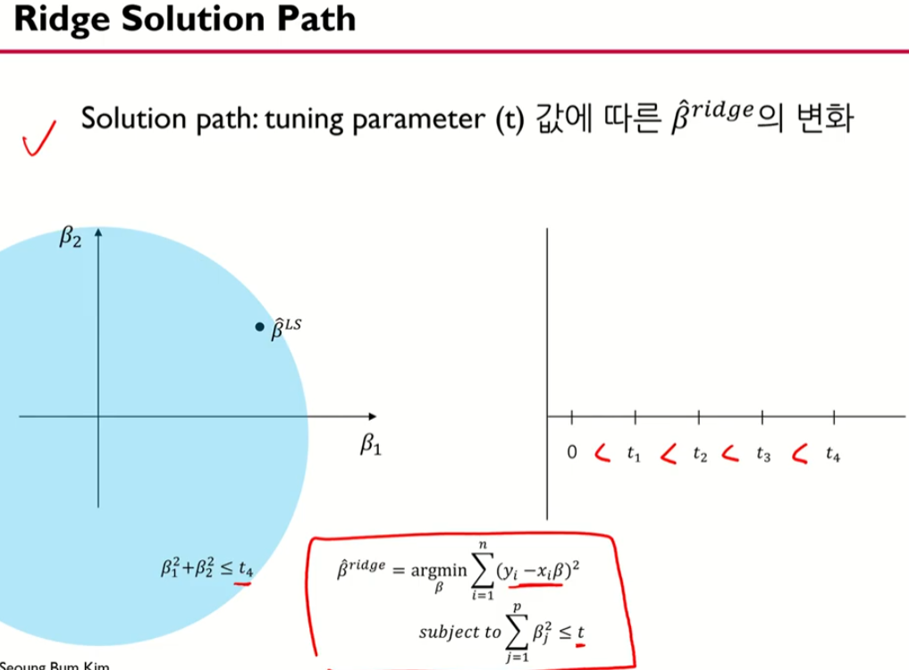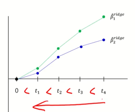 t값을 너무 크게하면 최소제곱법을 가한 솔루션과 베타값이 비슷해짐