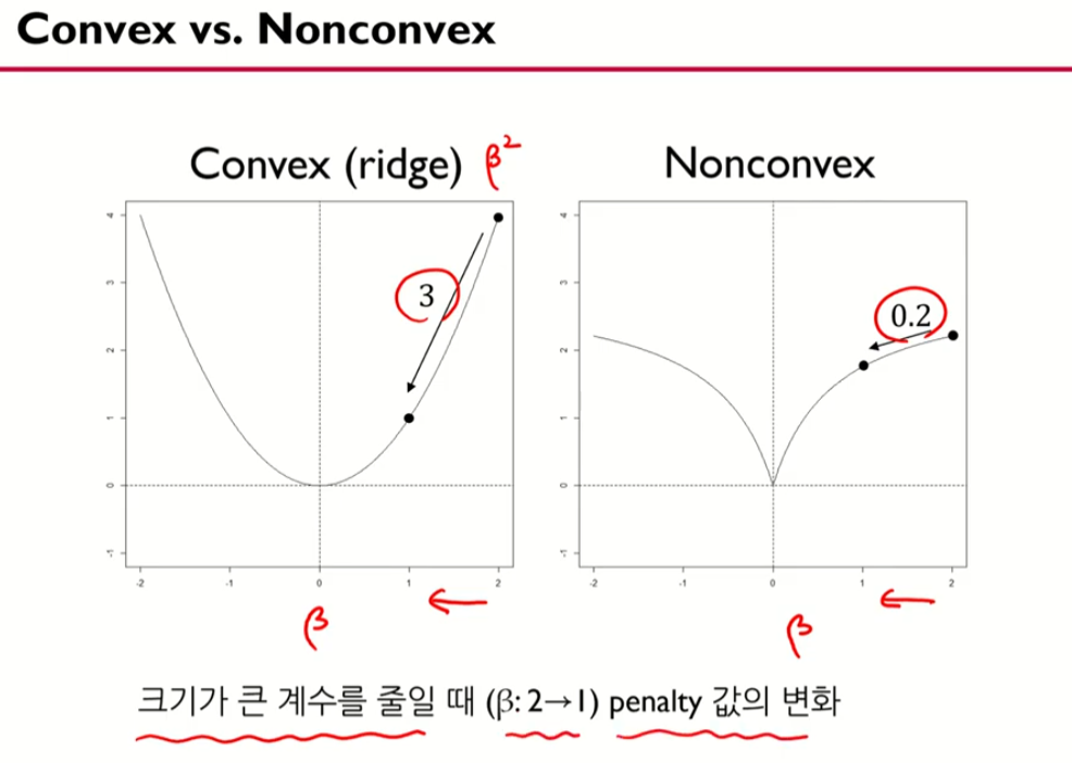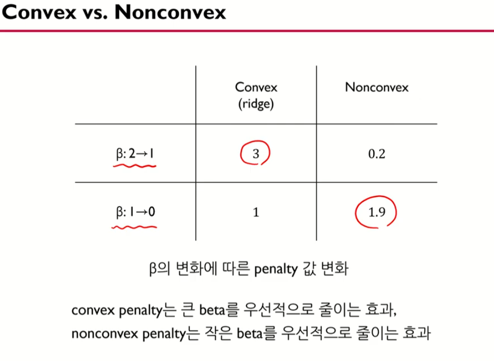작은 베타를 줄일 때는 논콘벡스의 패널티가 크게 변함
