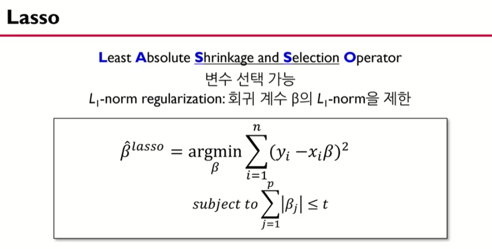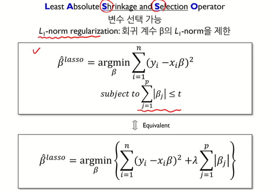 릿지와 비슷한데 제약식에 절댓값을 둔것