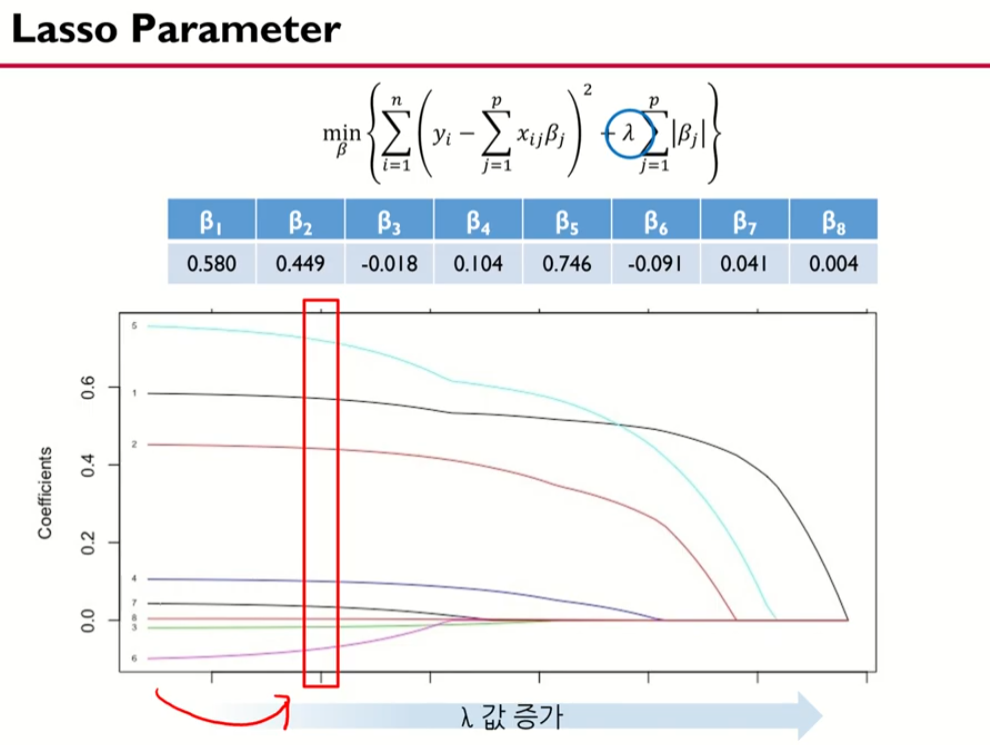 라쏘는 0이되는 값에서 찾아서 베타2가 중요하지 않다..??