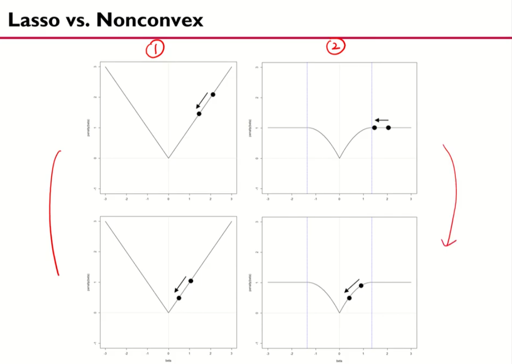 작은 베타를 줄일 때는 논콘벡스의 패널티가 크게 변함