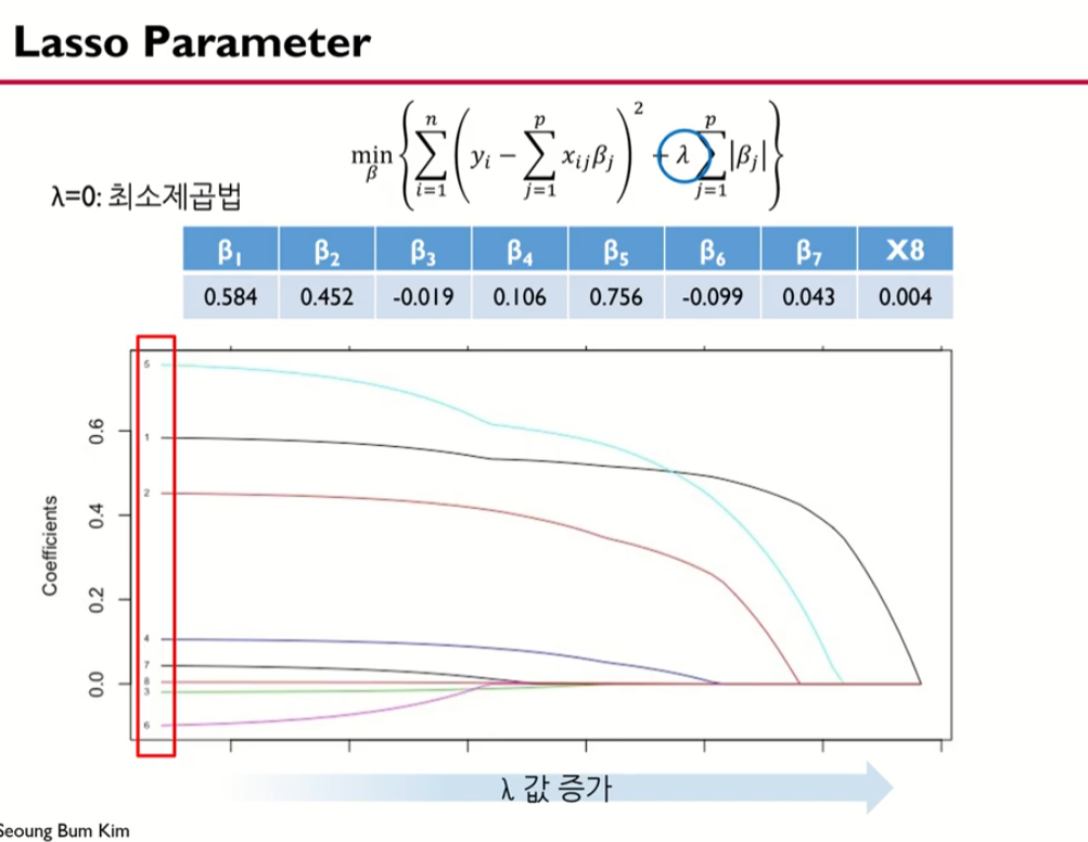 라쏘는 0이되는 값에서 찾아서 베타2가 중요하지 않다..??