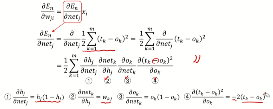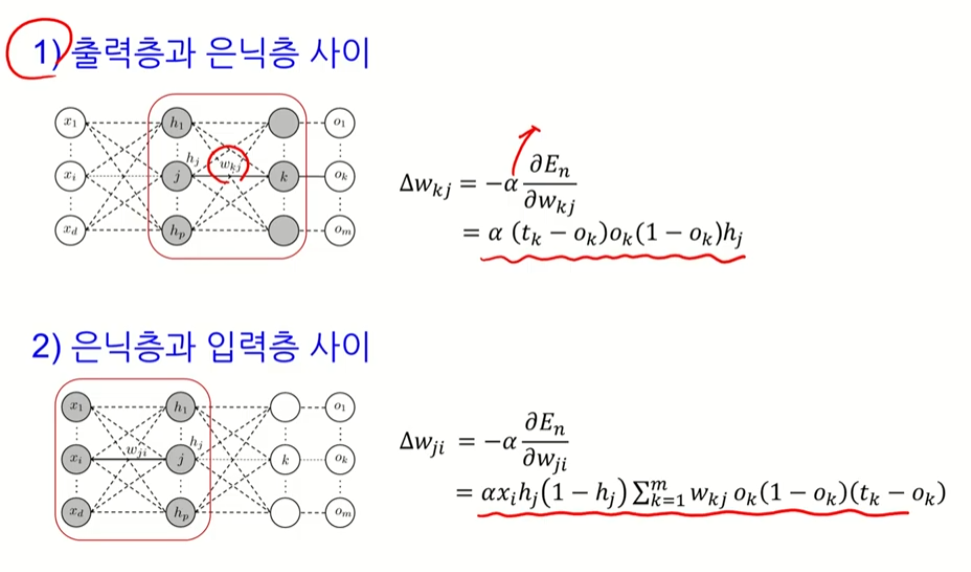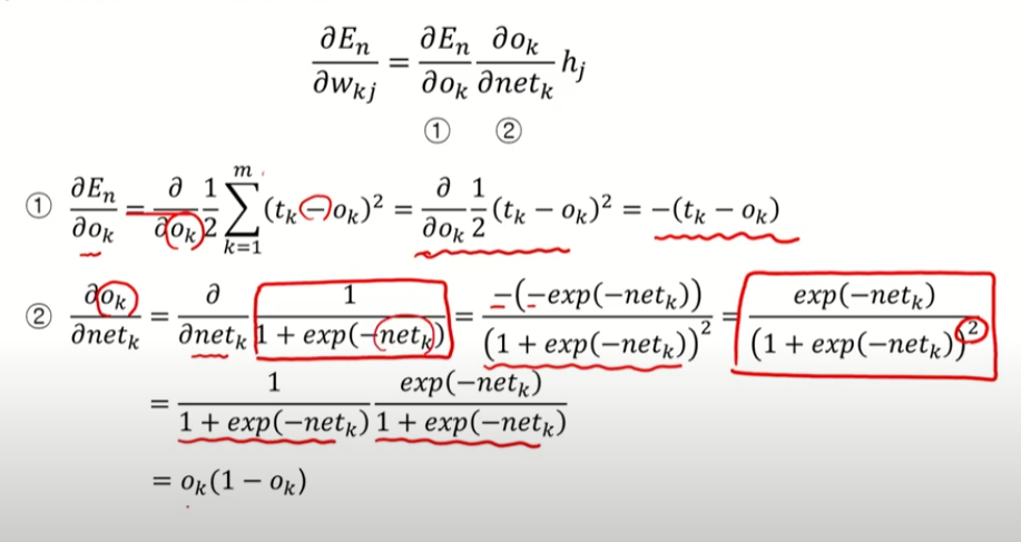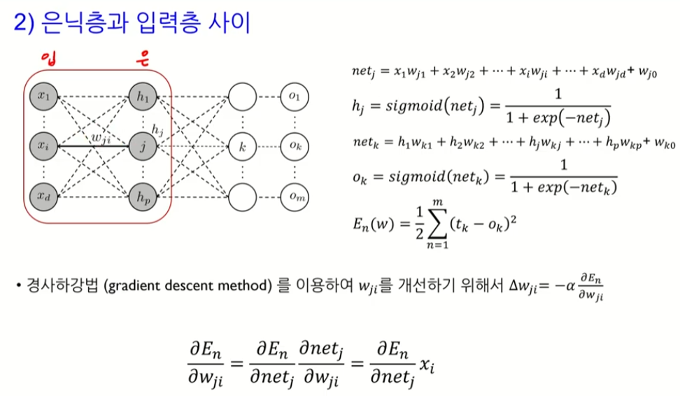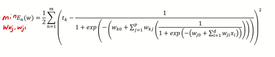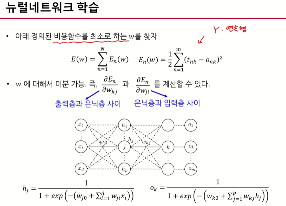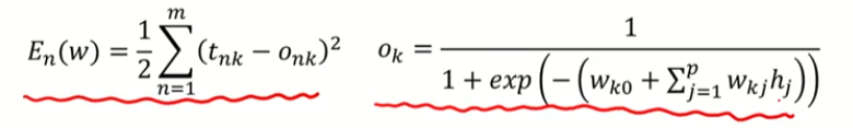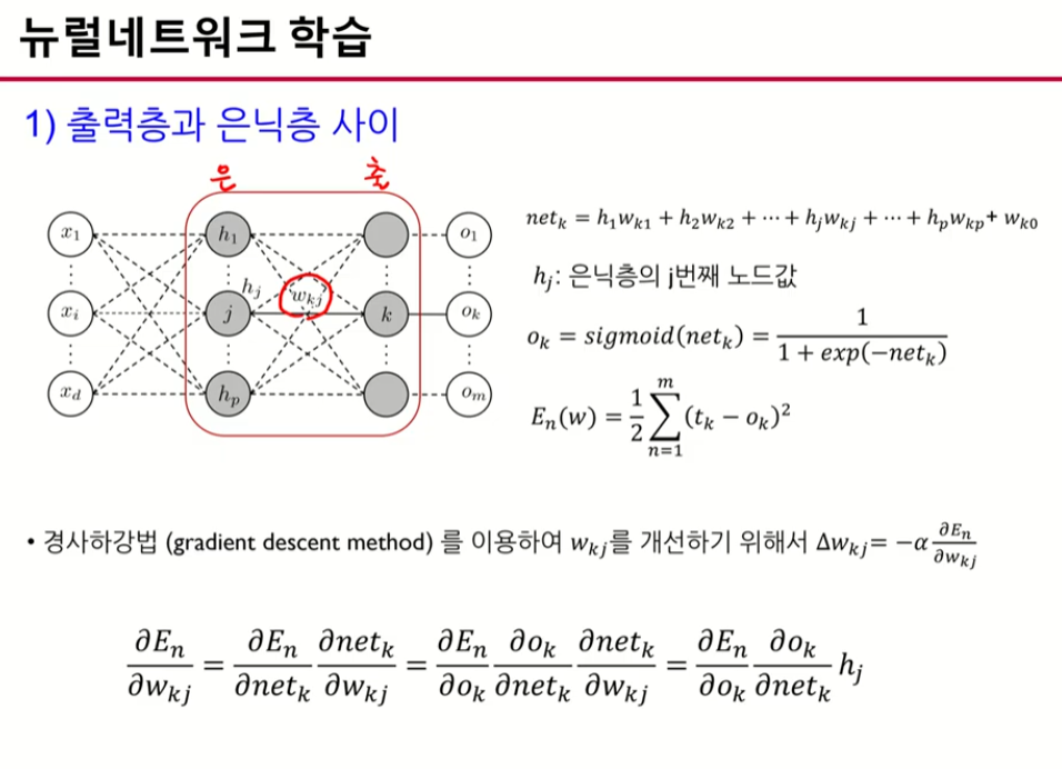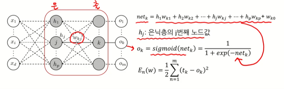 K번째 노드 -> 은닉노드들의 선형 결합을 시그모이드 함수로 합성하여 나타냄