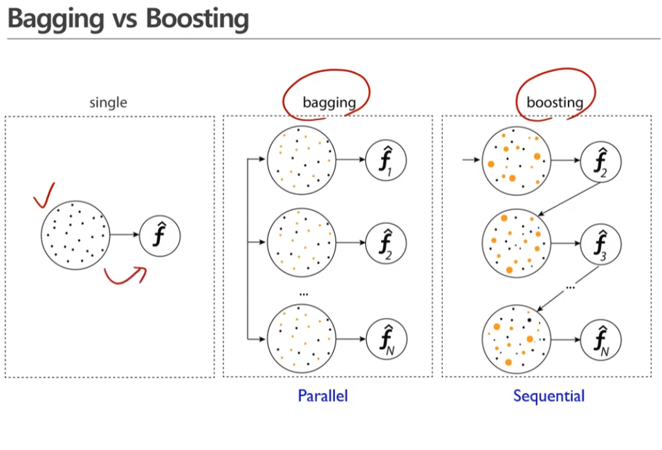 - 각 단계에서 새로운 base learner를 학습하여 이전 단계의 base learner의 단점을 보완