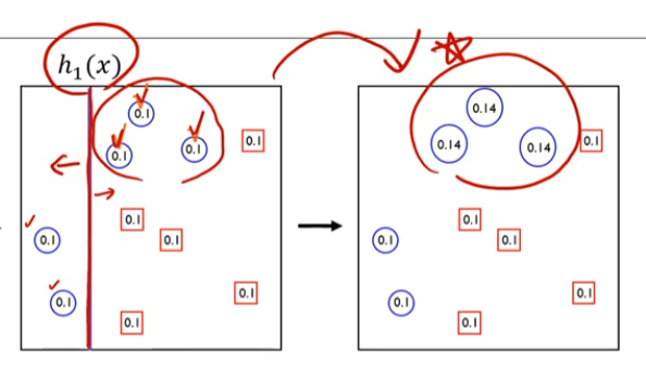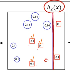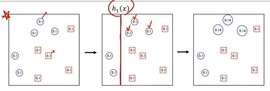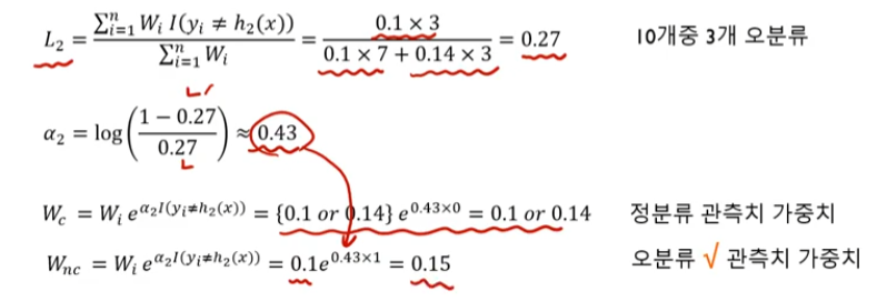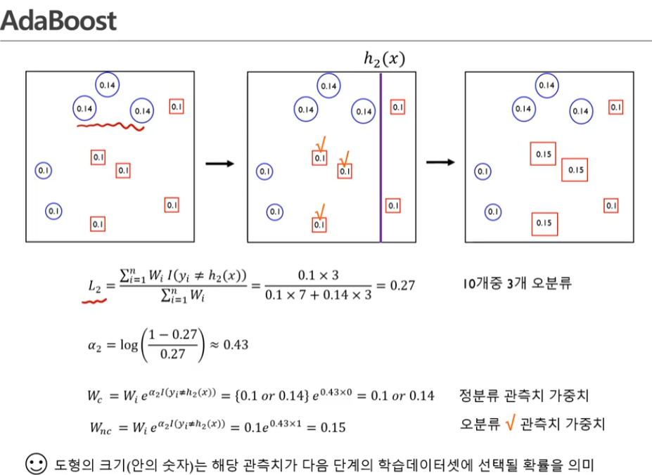 두번째 과정은 이제 우리가 오분류한 관측치에 중점을 두겠다는 것이다.