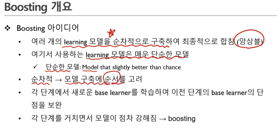Boosting 에서 많이 쓰이는 베이스 모델은 Decision Tree 이다.