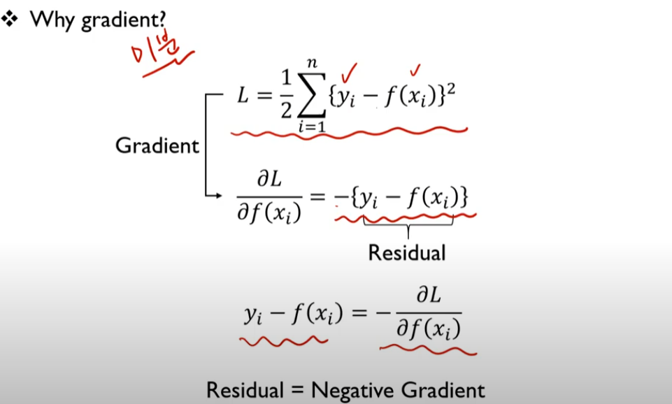 사실은 residual boosting machine 하는게 직관적이지만 간지나게 그라디언트라고 했음
