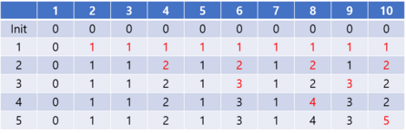 예를 들어 1번 블록은 2,3,4,5, ... 인 위치에 우선 설치합니다. 그다음 2번 블록은 4,6,8,10, ... 인 위치에 설치하고, 3번 블록은 6,9,12... 인 위치에 설치합니다.