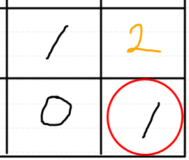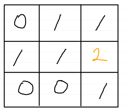 2라고 메모를 해주었지만 신경쓸 필요 없다. 본질은 해당 칸이 정사각형을 만들 수 있는 지 없는지에 달려있기 때문이다.