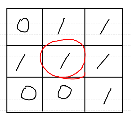 | [[0,1,1,1],[1,1,1,1],[1,1,1,1],[0,0,1,0]] | 9 |