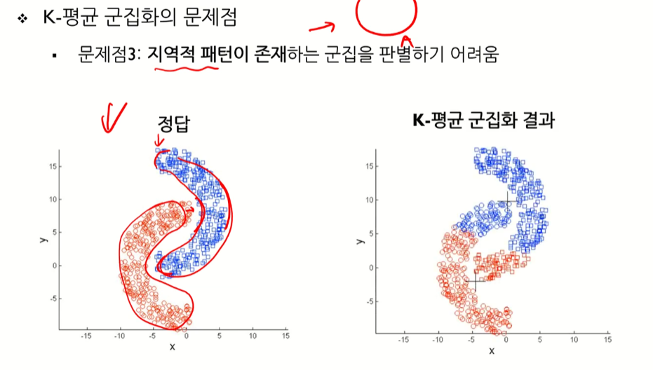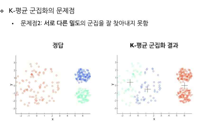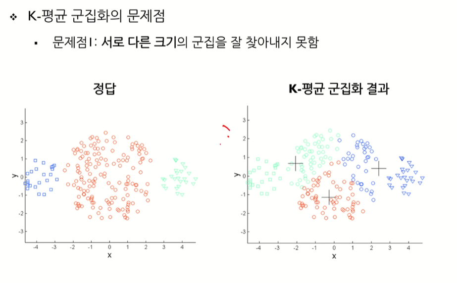 - 사전에 군집의 수 K가 정해져야 알고리즘을 실행할 수 있음