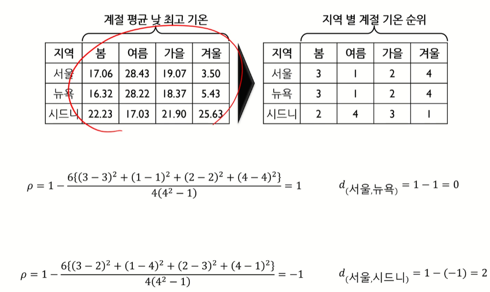스피어만 상관계수거리