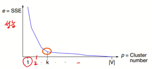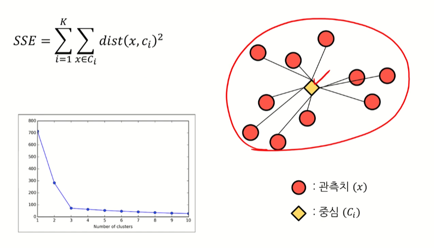 K개인 여러 군집 내에서 SSE를 구하고