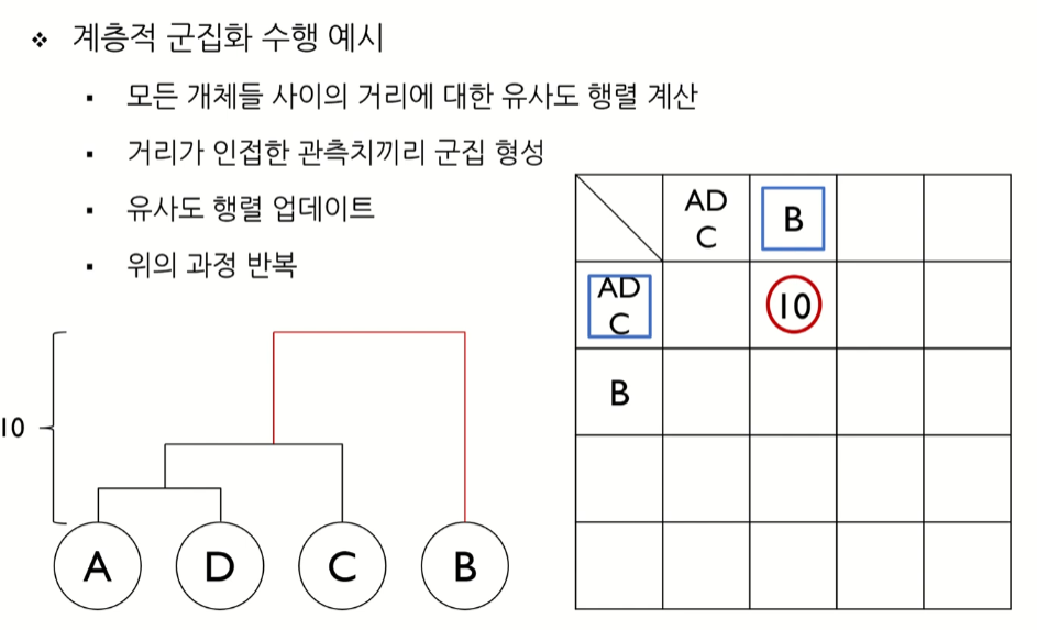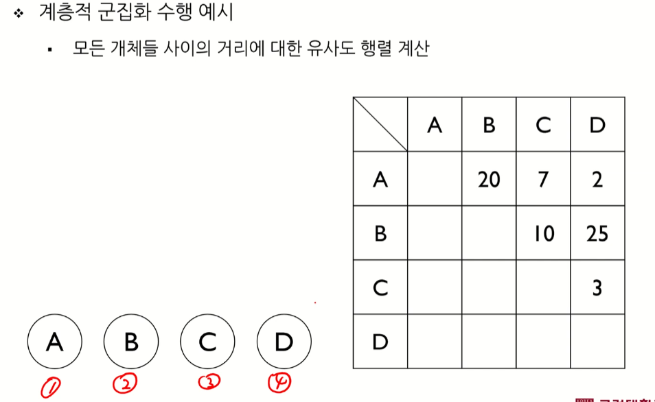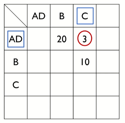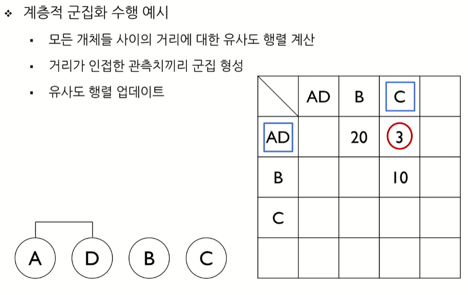 따라서 A와 D가 같은 군집으로 묶이게 되었따.