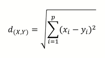 - 대응되는 관측치 X,Y 값 간 차이 제곱합의 제곱근으로써, 두 관측치 사이의 직선 거리를 의미함