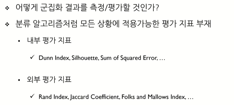 - 어떻게 군집화 결과를 측정/평가할 것인가?