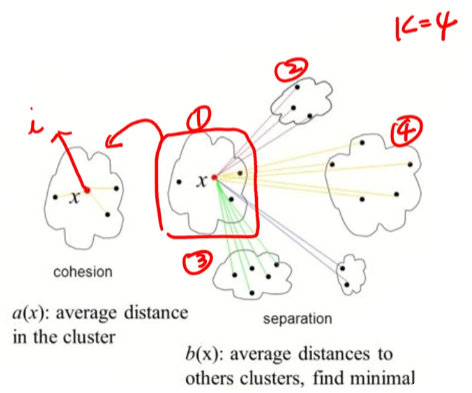 A(i)는 작을 수록 좋다 -> 군집 내의 거리이기 때문에