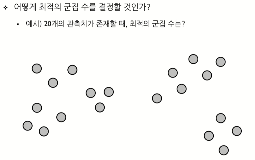 - 어떻게 최적의 군집의 수를 결정할 것인가?