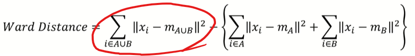 군집 각각 내부에서 각 거리의 차이의 제곱의 합