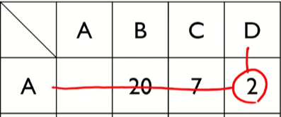 해당 표에는 개체간의 거리가 나타나있음