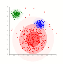 - 데이터의 분포를 기반으로 높은 밀도를 갖는 세부 영역들로 전체 영역을 구분