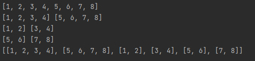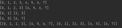 예제 [0, 1, 2, 3, 4, 5, 6, 7] 리스트를 계속해서 반으로 자른 값을 저장하여 출력하라.