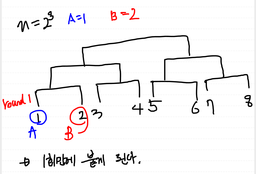 그러면 대진표에서 순서에따라 A,B가 어느 영역에 속하는지를 알아야 값을 구할 수 있다.
