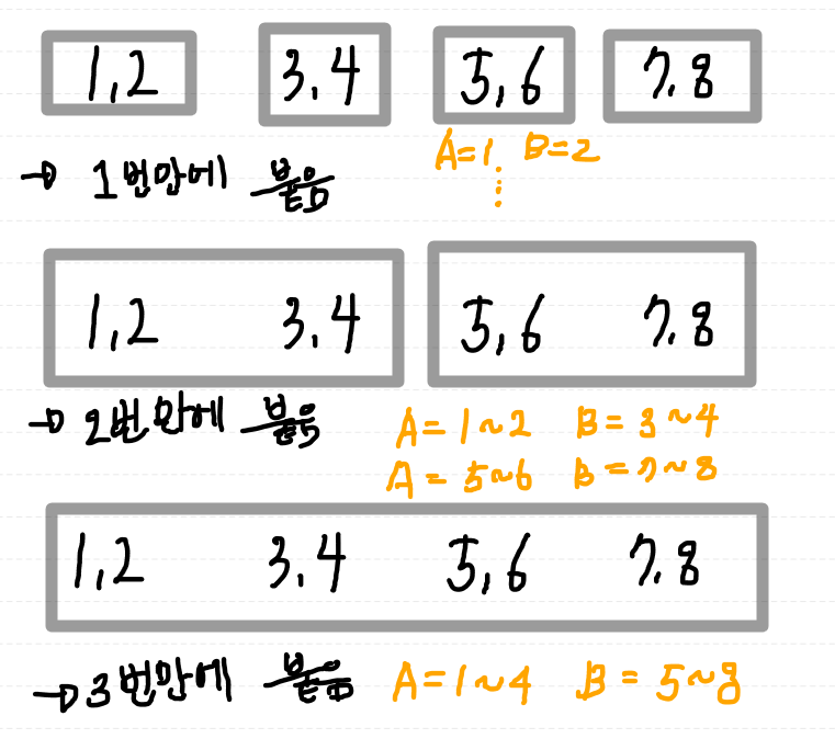 이 문제를 이해하려면 먼저 리스트를 계속해서 재귀를 이용하여 반으로 잘라 계산하고 검사하는 과정이 필요하다.