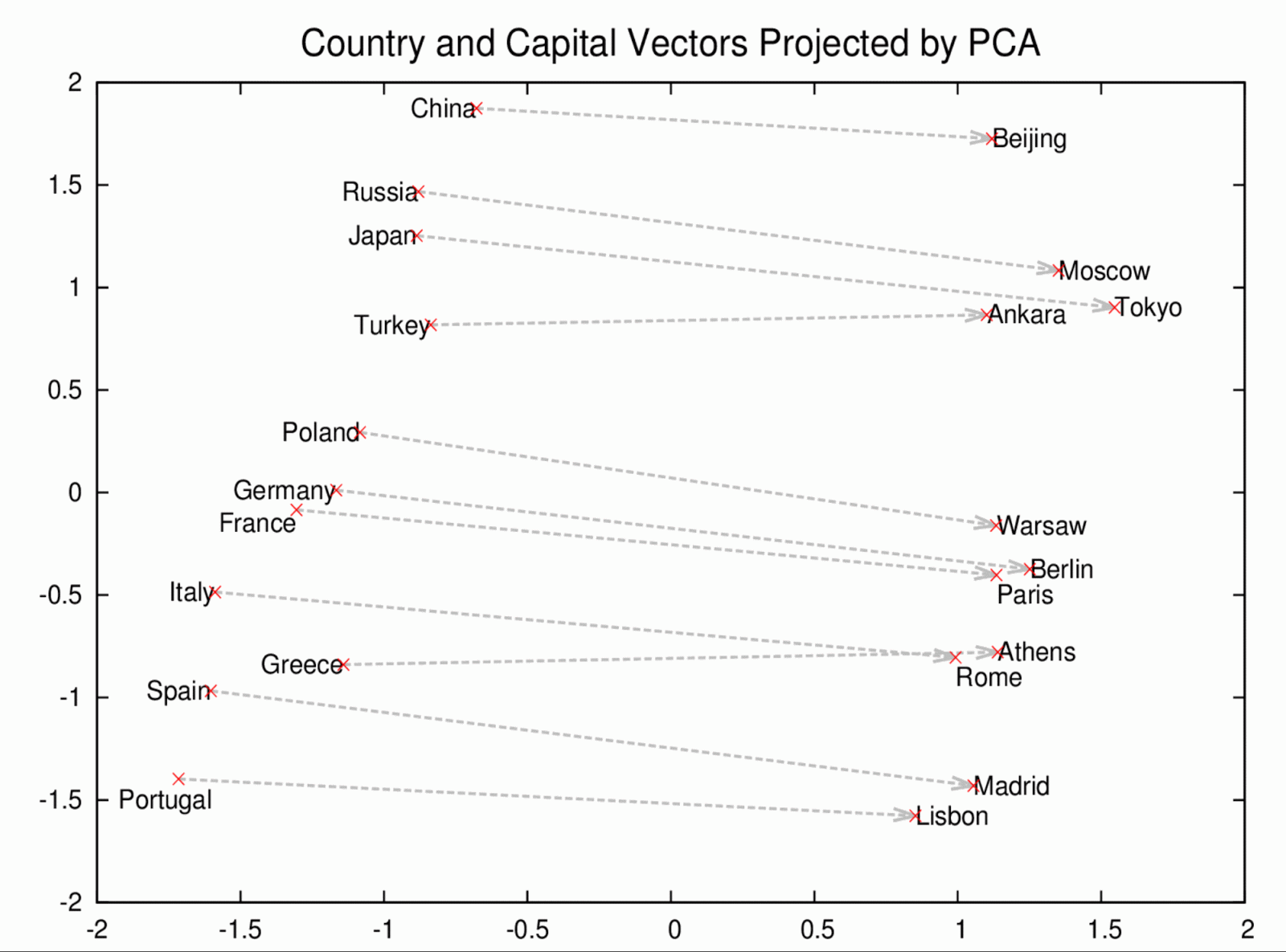 - Word2Vec은 분산 된 텍스트 표현을 사용하여 개념 간 유사성을 본다. 예를 들어, 파리와 프랑스가 베를린과 독일이 (수도와 나라) 같은 방식으로 관련되어 있음을 이해한다.